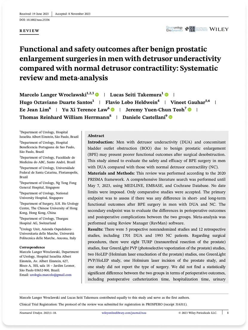 Functional and safety outcomes after benign prostatic enlargement surgeries in men with detrusor underactivity compared with normal detrusor contractility: Systematic review and meta‐analysis