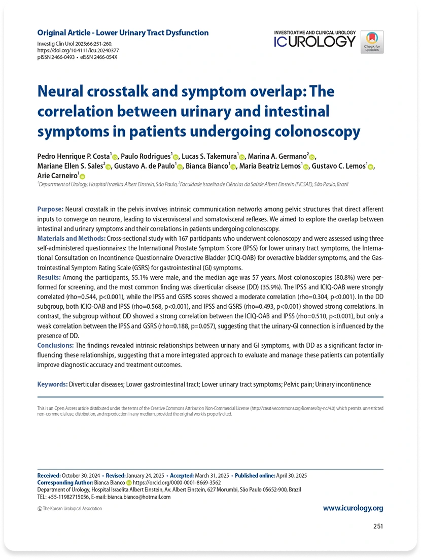 Neural crosstalk and symptom overlap: The correlation between urinary and intestinal symptoms in patients undergoing colonoscopy