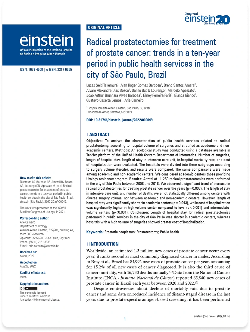 Radical prostatectomies for treatment of prostate cancer: trends in a ten-year period in public health services in the city of São Paulo, Brazil
